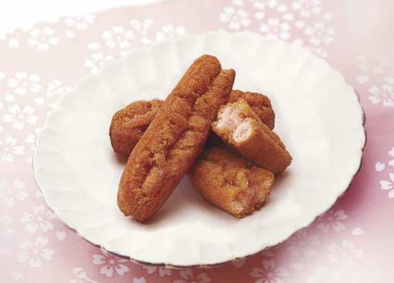 ☆さっくり揚げた生地に桜シロップをふんだんに使った蜜をしみ込ませました。
